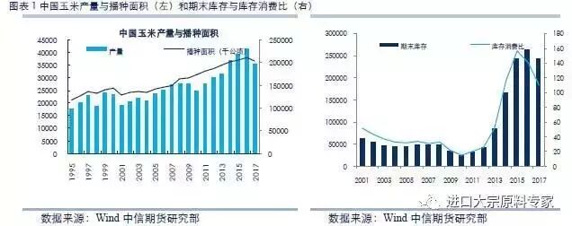 2016/17年度中國玉米播種面積約3676萬公頃,產(chǎn)量約2.15億噸。2017/18年,在國家玉米去庫存政策下,種植面積下降,預計產(chǎn)量下降到2.0億噸左右;國家?guī)齑鎻娜ツ甑?.3億噸下降到目前的2.1億噸左右。